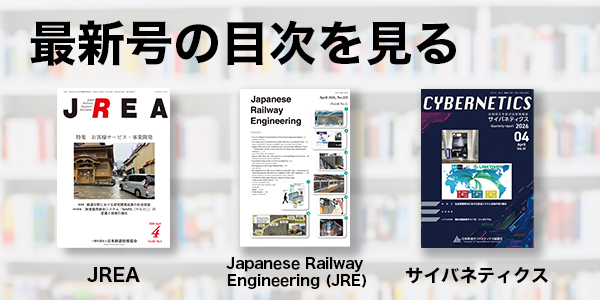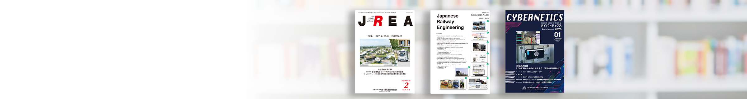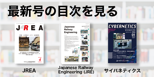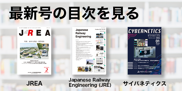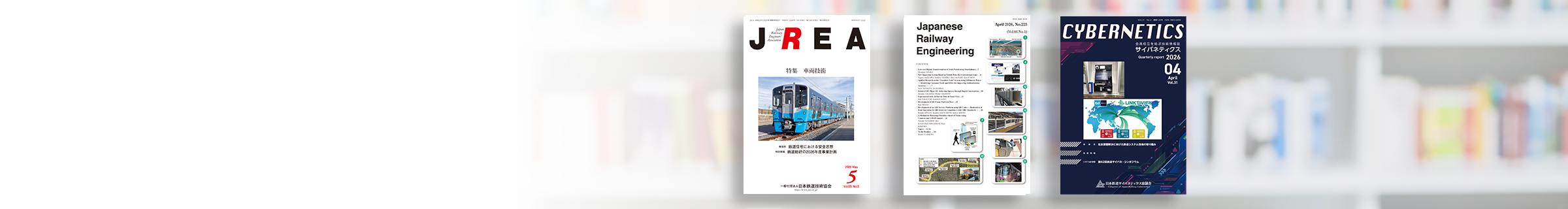 ・JREA 会員へ配布される我が国唯一の鉄道総合技術の月刊誌 ・Japanese Railway Engineering (JRE) わが国の数少ない鉄道の総合技術に関する英文誌 ・サイバネティクス 年4回開始サイバネティクスを編集発行